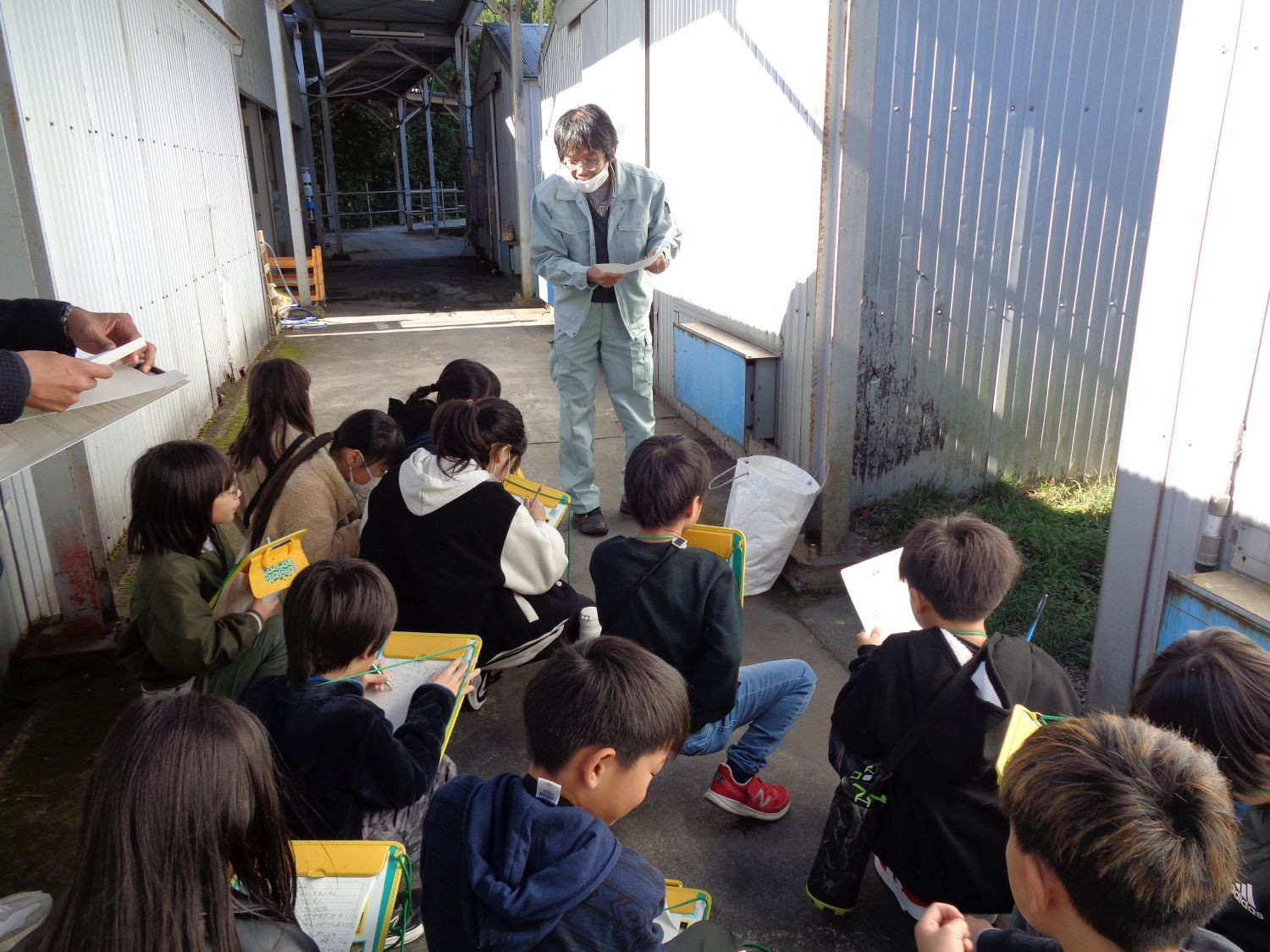 令和7年11月26日に宮前小学校の3年生12名が社会科の授業の一環として菌床センターを訪れました。